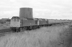 Saturday 25th August at Newport: (L) 25063 prepares to leave for Cardiff with the 06.03 departure from Crewe and (C) later that day 25063 arrives with the 17.10 Cardiff - Crewe service. (R) 25131 (front) and 25135 wait in the sidings at Skegness with the stock for the 18.50 departure for Leicester on Monday 27th August. |