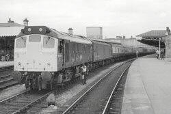 On the 2nd May 25072 stands at Leicester with the 18.37 Birmingham - Norwich train. However this loco wasn't destined to go any further as 25051 was lined up to take the train forward. |