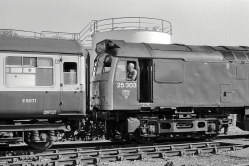 (L and C) Class 25 locomotives 25323 (front) and 25303 head the return "Cambrian