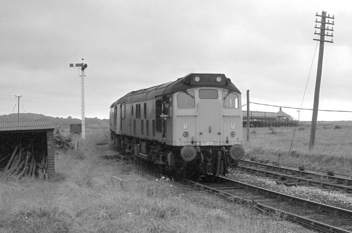 25040 (front) and 25147 arrive with the train from Barmouth. On arrival at Machynlleth 25040 was declared a failure and was removed from the train. 25147 alone took the load 11 train up Talerddig and cleared the summit at 8 mph. |